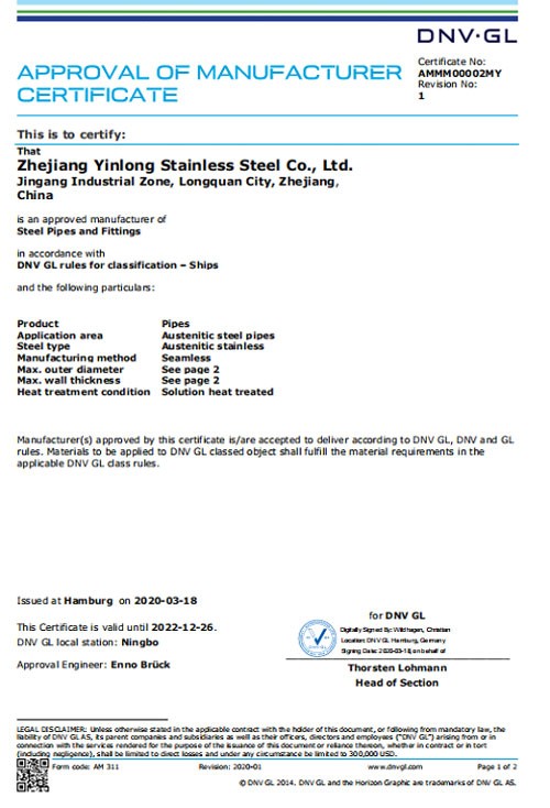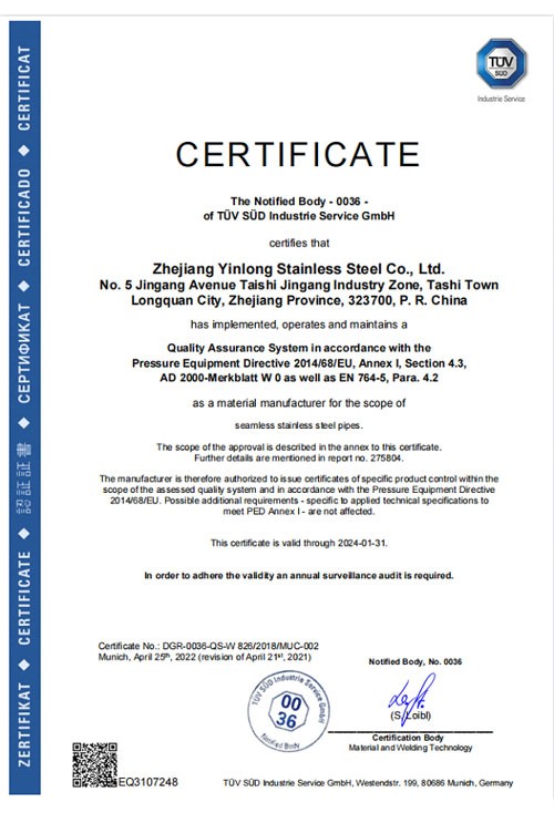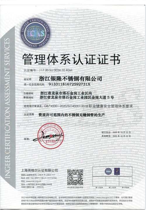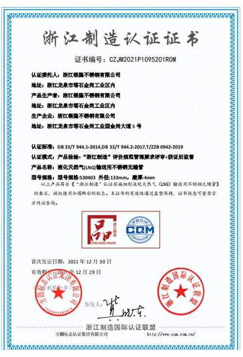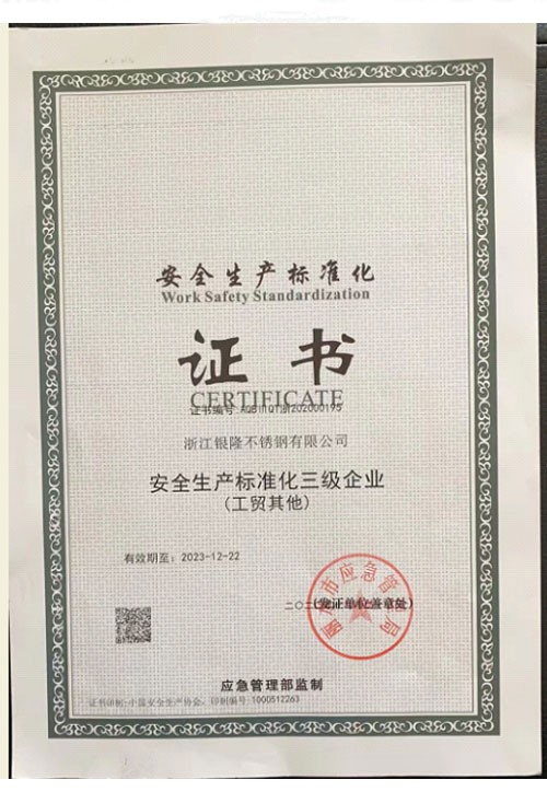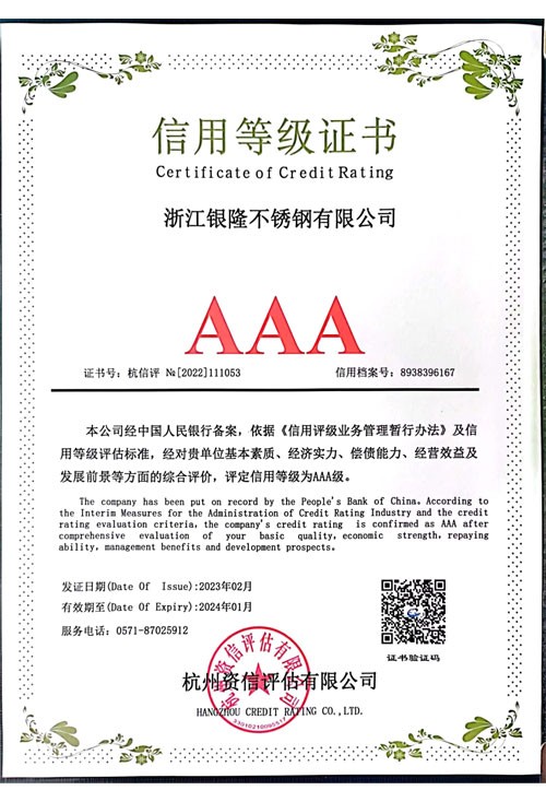 浙江銀隆不銹鋼有限公司創始于2006年,是一家專業生產不銹鋼無縫管的企業。公司位于浙江麗水市,企業注冊總資金貳億壹仟柒佰肆拾玖萬元,擁有4家工廠,占地總面積11萬平方米,職工530人,年產不銹鋼無縫管5萬噸。